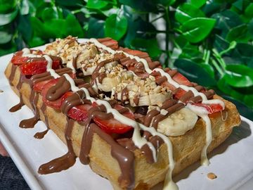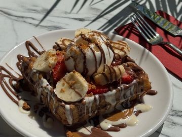 İtalyan ice Cream, çilek, muz, sütlü çikolatalar, lotus sos ve süslemelerle servis edilmektedir.